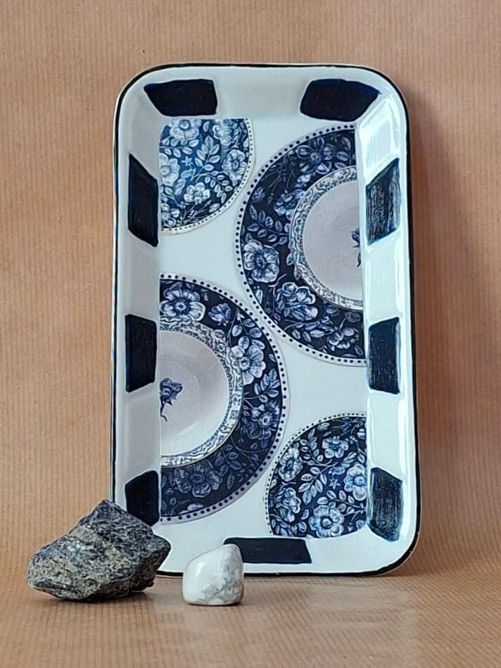 Mijn kunst begint niet met een plan. Het begint met iets dat mijn aandacht trekt: een kleur, een beeld, een object, een idee, een gedachte. Ik struin mijn eigen kasten en de kringloopwinkels af op zoek naar objecten die me iets zeggen. Borden, vazen, dingen met een verhaal. Zij worden het canvas waarop mijn kunst vorm krijgt. Met afbeeldingen, tekeningen, verf en klei transformeer ik ze tot er iets nieuws ontstaat. Kijken, lagen toevoegen, weghalen, draaien, opnieuw kijken. Net zo lang tot ik voel: het is klaar om naar een nieuwe eigenaar te gaan.